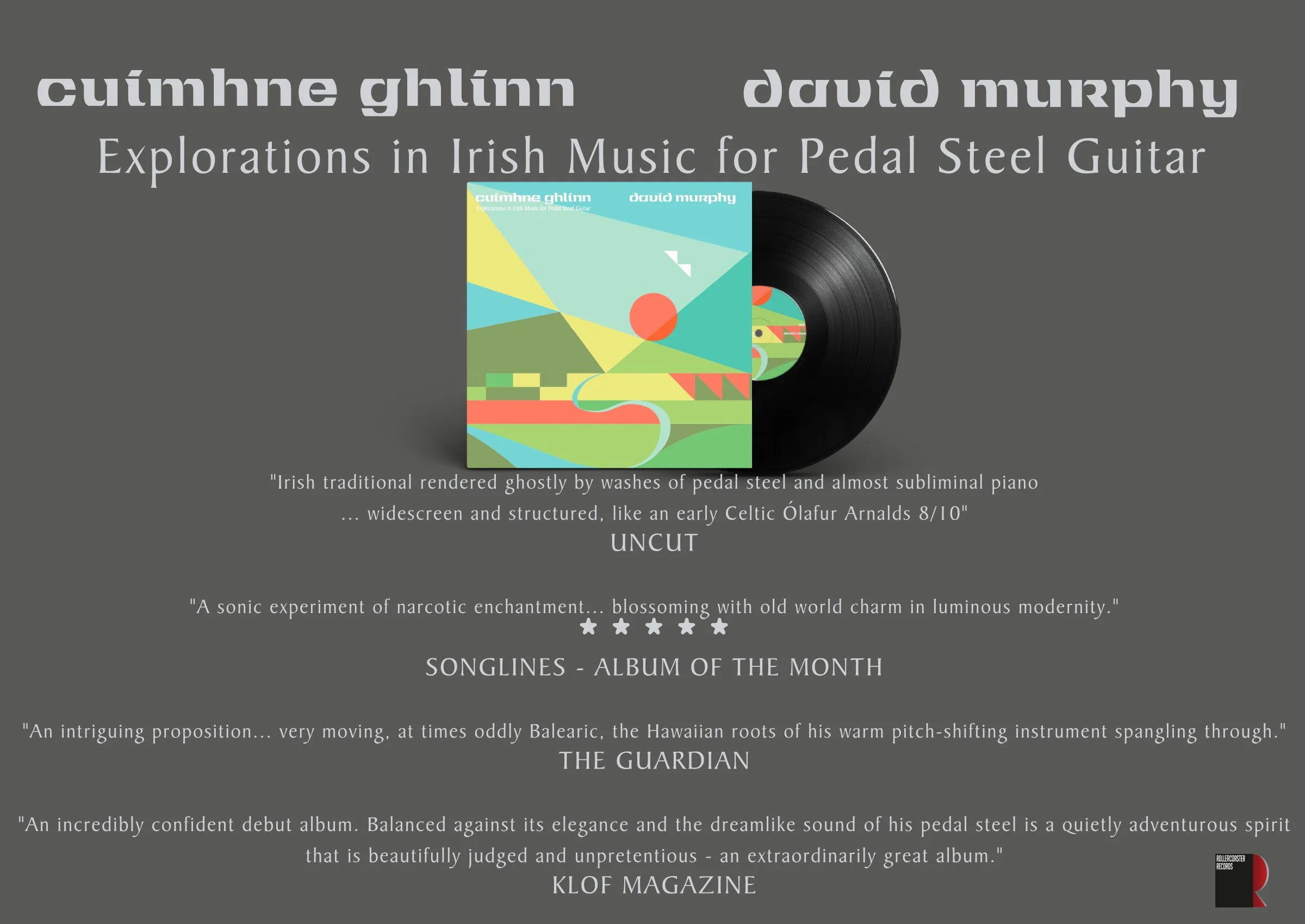 "The pedal steel guitar has unique timbre, tuning and tonal capabilities. It offers rich sustain, swelling glissando and the ability to bend expressive and mournful notes that merge seamlessly and elastically into changing chords. Its unmistakable, crying sound is identified on hundreds of acclaimed records in folk and country genres. In the 21st century, it has continued its evolution into electronica, ambient and experimental music realms. With this record, my objective was to take the instrument away from its excursions across well-worn roads through the dusty American south and southwest and deeper into a world much closer to home and, for the very first time, present it in a modern Irish framework."
